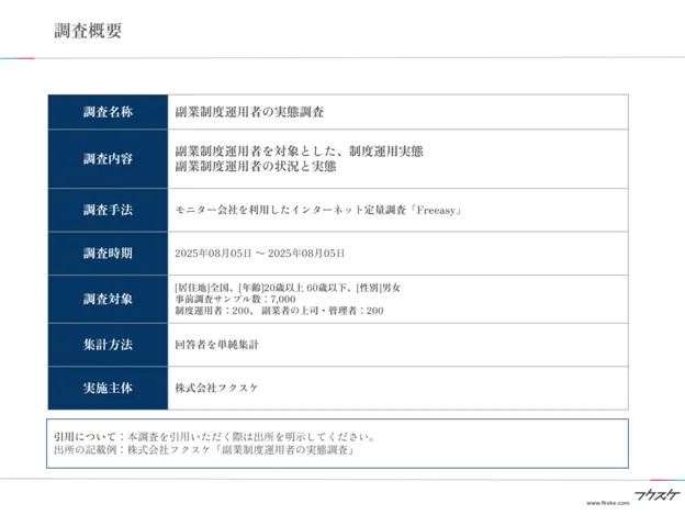 出所の記載例:株式会社フクスケ「副業制度運用者の実態調査」