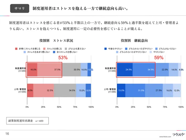 ■制度運用者はストレスを抱える一方で継続意向も高い。