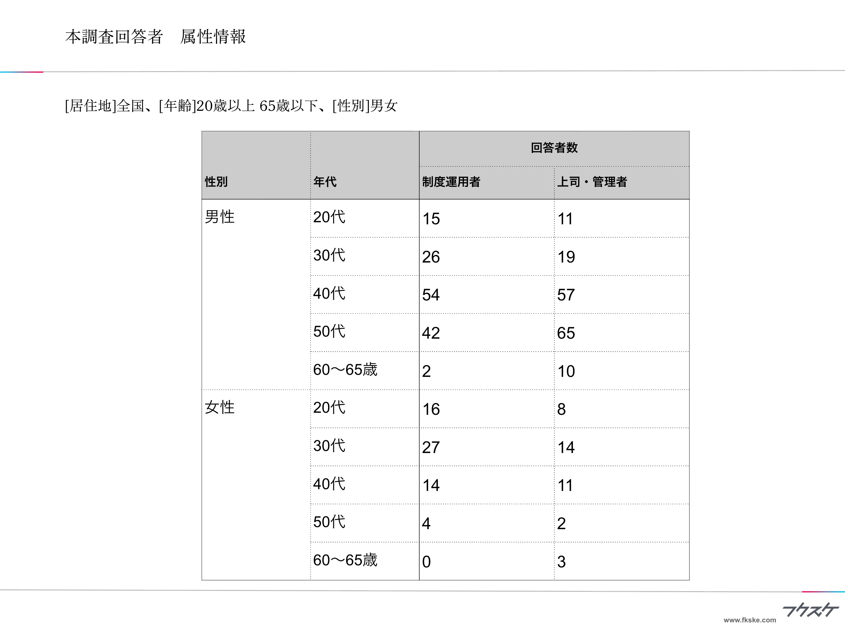 制度運者の担当者は30代以下が42%を占める一方、上司・管理者は50代以上が40%。