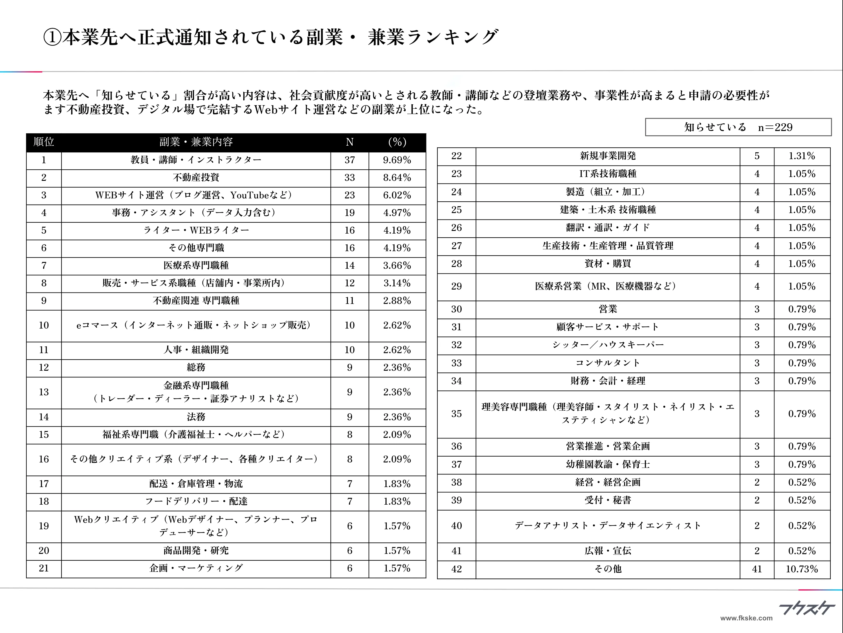 ②正式通知はしないが上司や同僚には伝えている副業・兼業ランキング