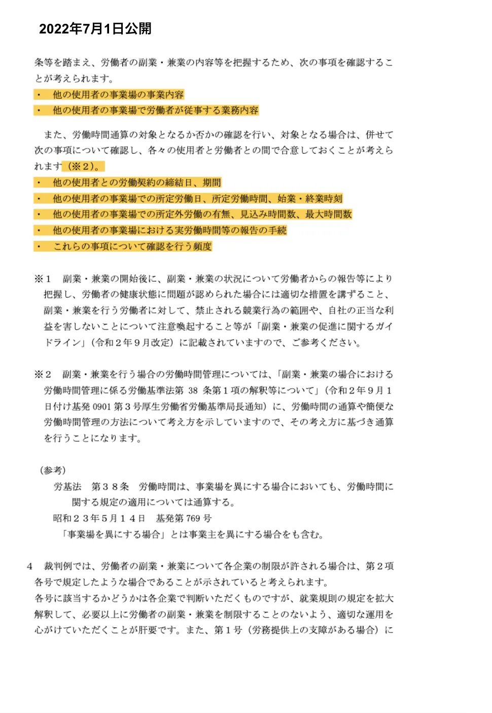 加えて、偽装請負など会社を通じた副業者への注意喚起まで記載されています。